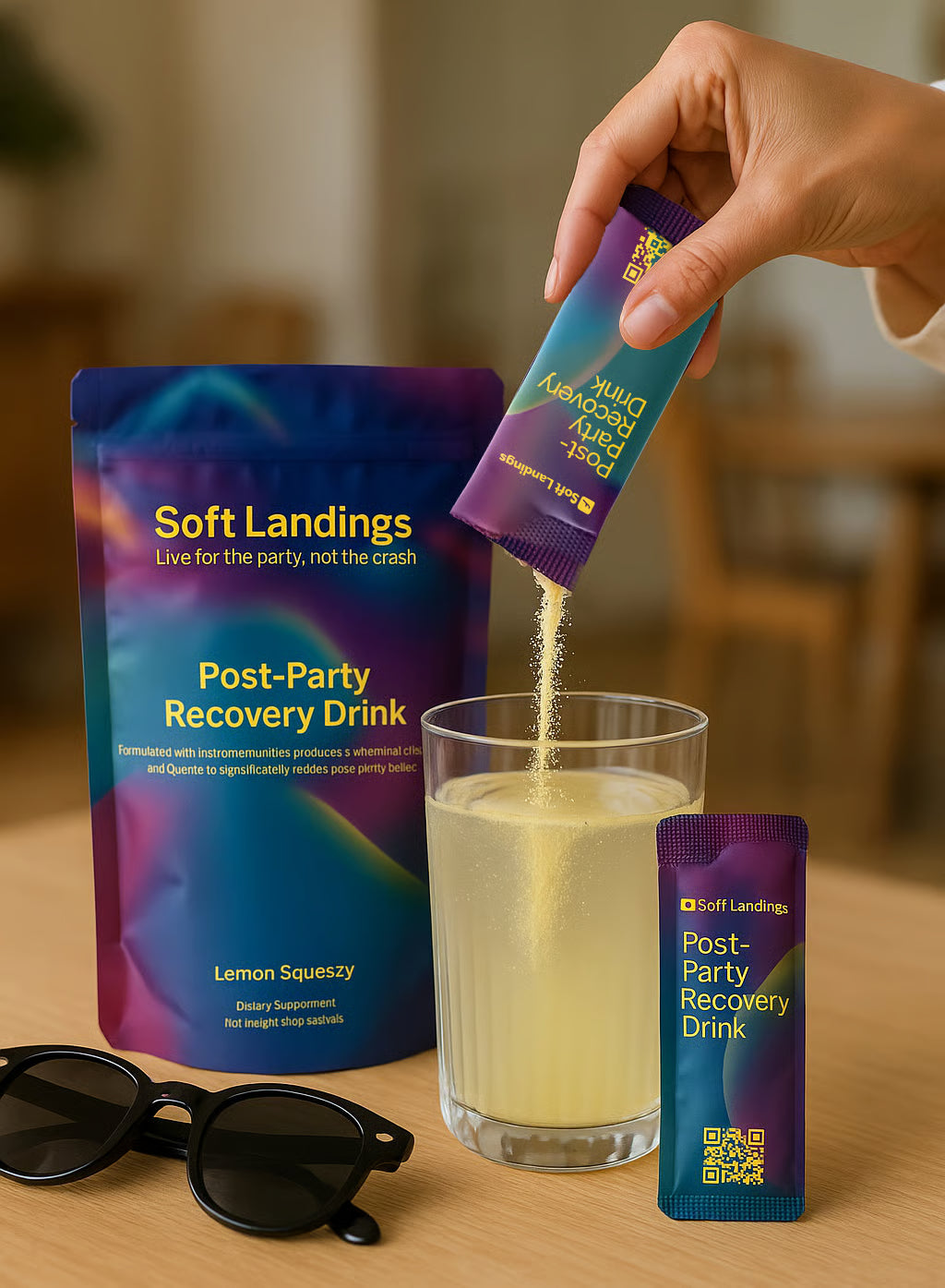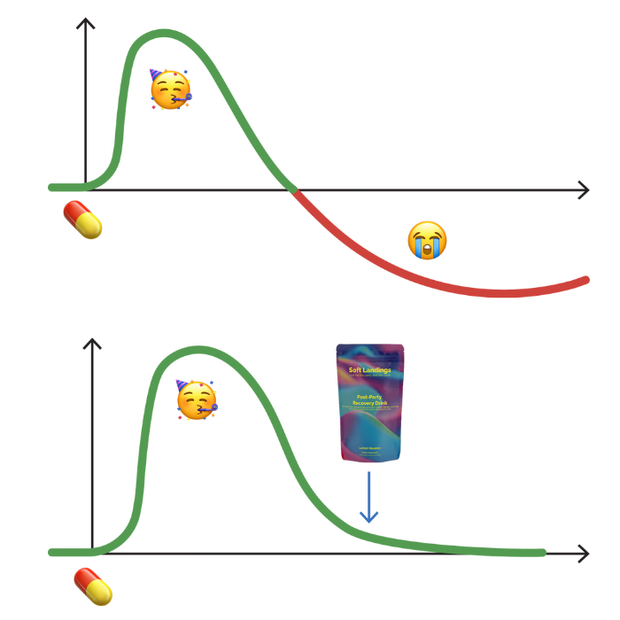 This isn’t your average recovery drink. Soft Landings is a scientifically formulated post-party supplement designed to help your body and mind bounce back after a big night.